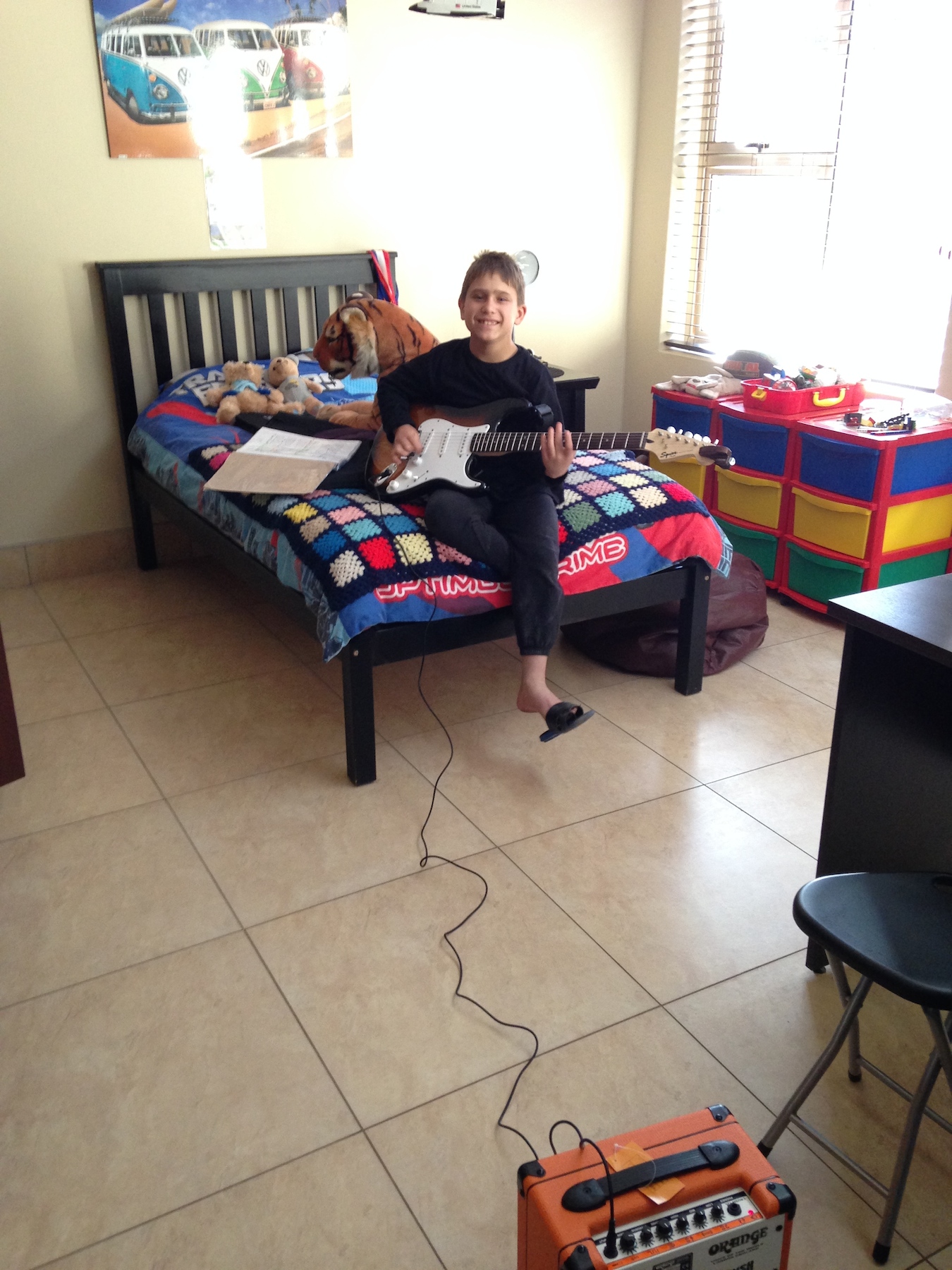 Enjoy your gift!! He received a Fender Bullet Stratocaster electric guitar. It is your passion my boy, we love seeing you play...