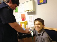 This was Stefan's third Bone Marrow Aspiration. What a terrible procedure!! You would think that in this day and age you would not need to insert a corkscrew into somebody's hipbone and insert a needle the size of my pinky to extract some bone marrow....